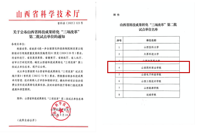 近日,山西省科技厅正式发布科技成果转化“三项改革”第二批试点单位名单。世界杯官网凭借在科研创新领域的持续深耕、成果转化机制改革的积极推进,以及产学研深度融合方面的有力探索,成功跻身省级试点单位之列。