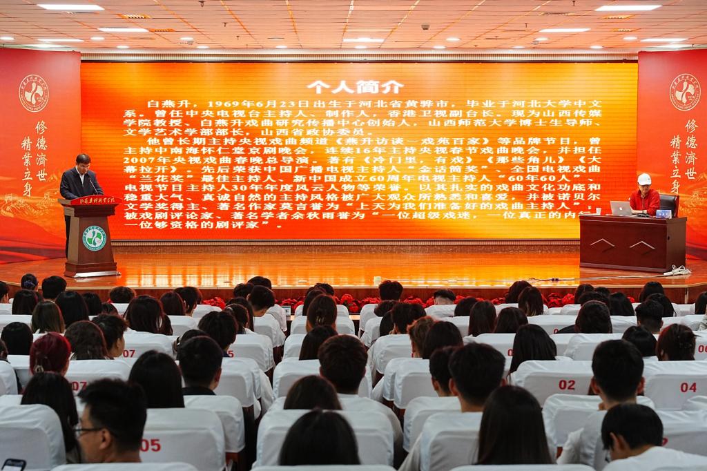 报告会上,白燕升还分享了团队制作的长治文旅宣传片原创歌曲《相约长治》短片,获得师生一致好评。