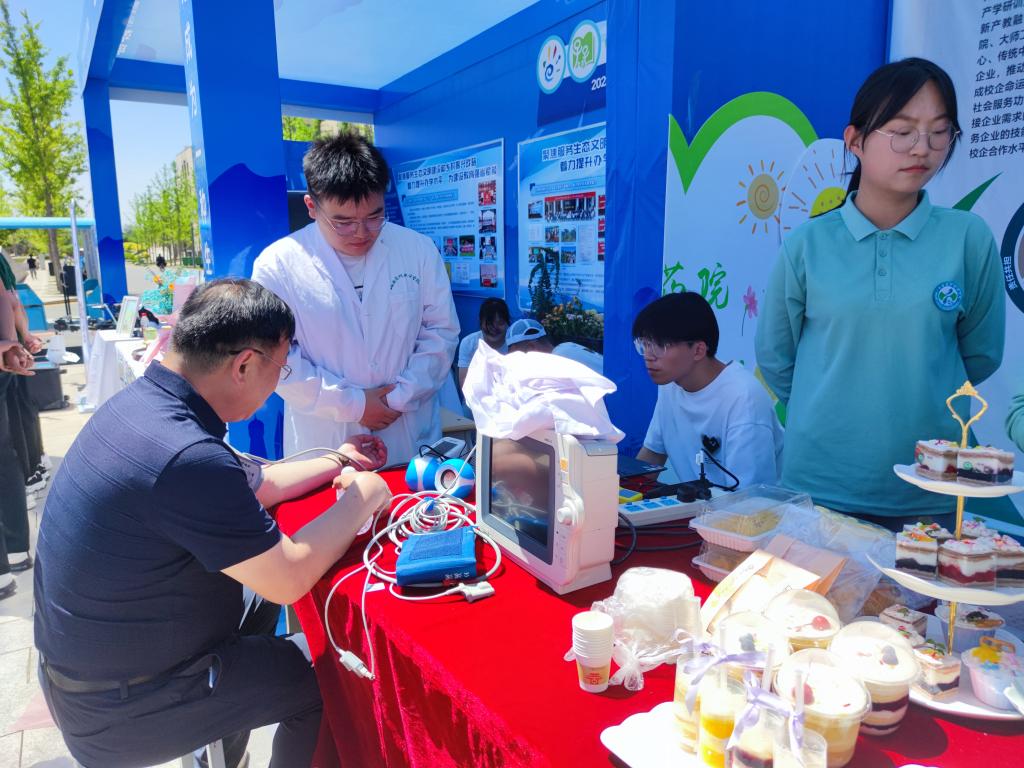 学院其他系的师生也就各自相关专业进行了展示。化妆品医美系展示了自制的口红、氨基酸洗手液、手工肥皂、香膏等化妆品,精致的展品、专业的讲解获得了参观者的一致好评;医疗器械系结合专业特色进行了单片机控制LED、小音箱等学生自制作品展示,并娴熟地演示了血压仪和心电监护仪的规范使用;食品系师生精心制作的甜点、蛋糕类产品不论是口感还是造型都让体验者啧啧称赞。