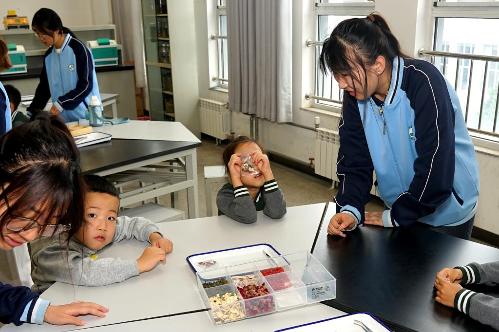 中药标本馆内,琳琅满目的药材标本引人入胜,孩子们认真聆听讲解,辨认常见药材,惊叹于大自然的慷慨馈赠。