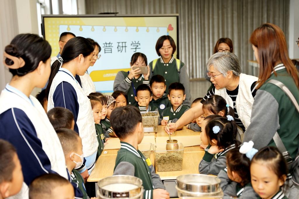 在中药调剂技艺传承基地,孩子们认识了戥秤、药碾等传统工具,了解“抓药”“称量”的流程,感受古老技艺的精妙。