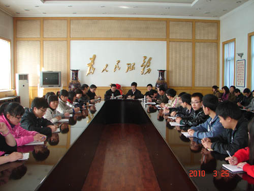 为进一步增进学院与学生之间的交流和沟通,促进学院各项工作的开展,2010年3月25日下午四时,世界杯官网新一届领导班子与学生代表在办公楼大会议室召开座谈会。学院党委书记张瑞芳,党委副书记、院长李华荣,副院长胡尔雅、...2010-03-26 -