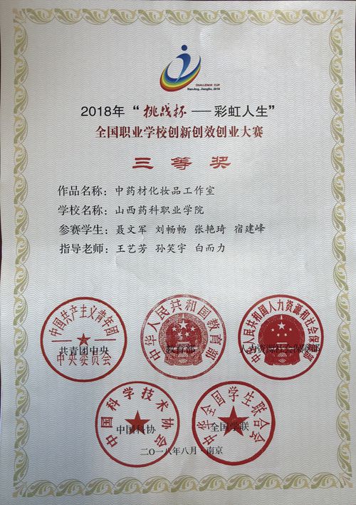 世界杯官网喜获2018年“挑战杯——彩虹人生”全国职业学校创新创效创业大赛三等奖