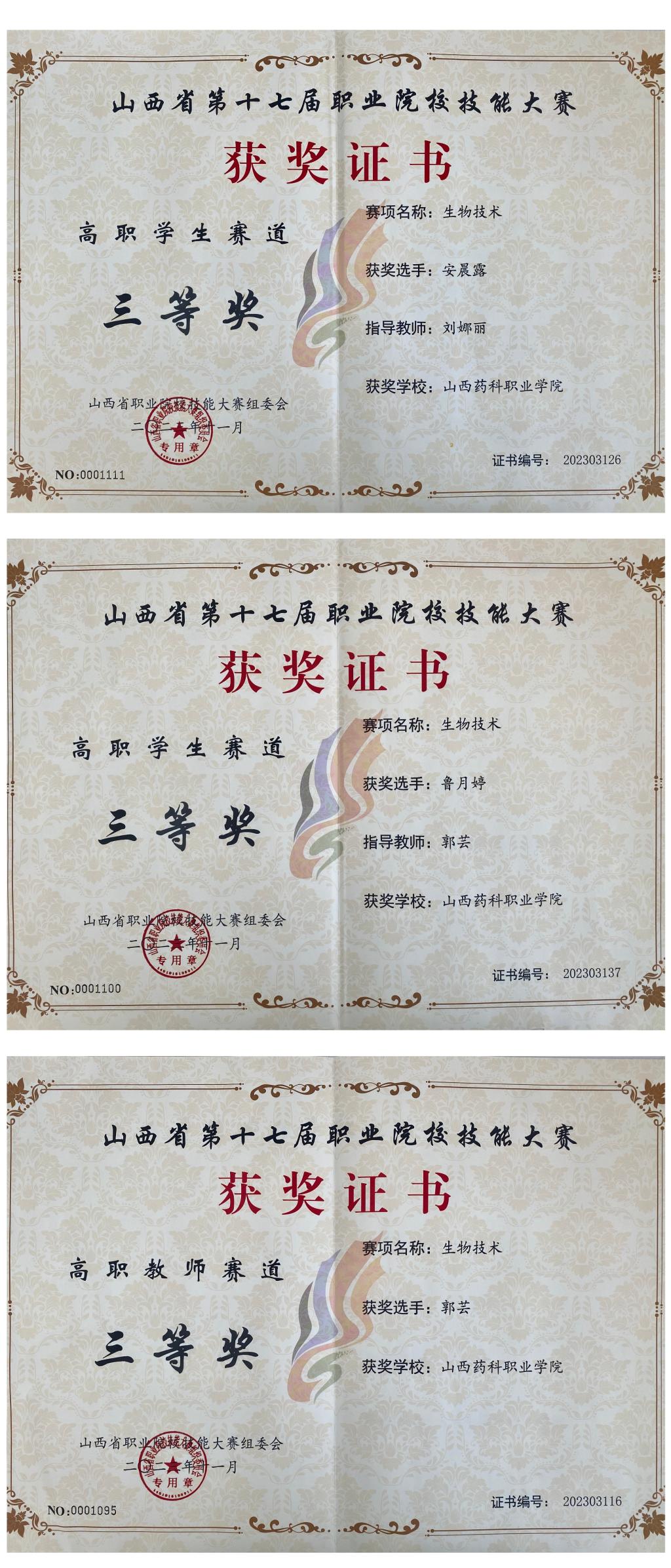 世界杯官网师生在山西省第十七届职业院校技能大赛“华兴科软杯”生物技术赛项中荣获佳绩