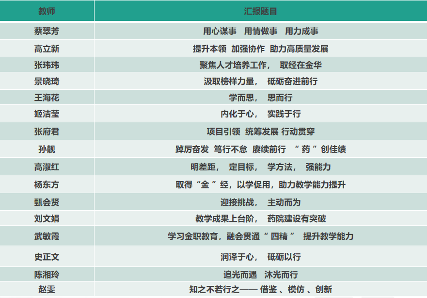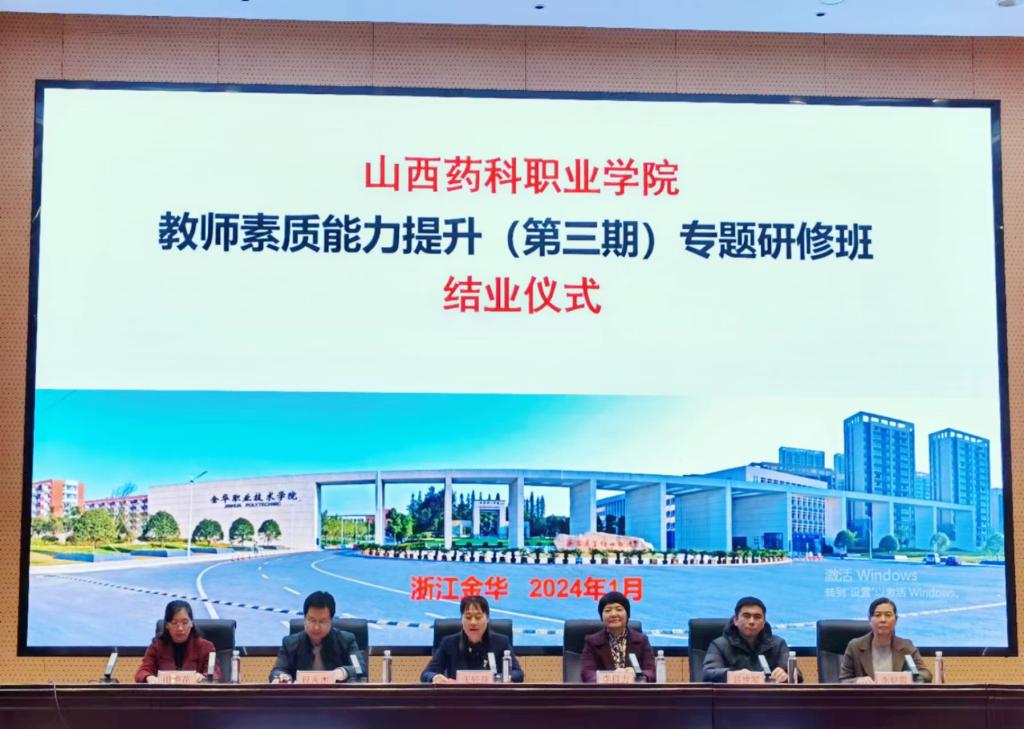 1月19日下午,学院教师素质能力提升(第三期)专题研修班在金华职业技术学院圆满结业。金华职业技术学院制药学院党委书记李群力,学院党委副书记、院长张轩萍出席结业仪式并讲话,全体参训教师参加结业仪式。本次研修设置了14个主题,主要包括教学成果奖培育申报、职业教...2024-01-21
