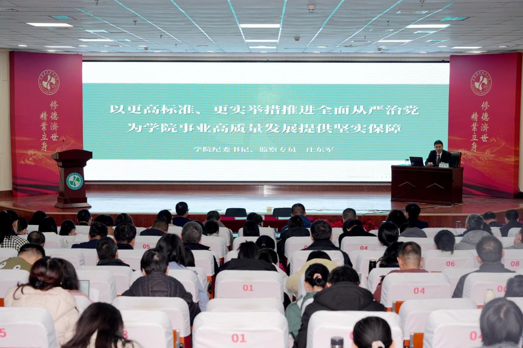 3月6日上午,学院召开2026年全面从严治党工作会议,全面贯彻落实二十届中央纪委五次全会、省纪委十二届六次全会和2026年全省教育系统全面从严治党工作会议精神,总结2025年学院全面从严治党工作成效,分析形势任务,安排部署2026年重点工作。学院党委书记张轩萍作总结讲...2026-03-06 -
