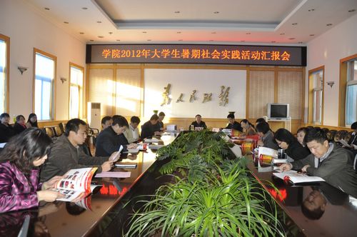 2012年10月24日下午,学院2012年大学暑期社会实践活动汇报会在办公楼二层会议室召开。党委书记张瑞芳,党委副书记、院长李华荣,党委委员、副院长胡尔雅出席会议。各系书记和相关部门负责人、团队指导教师、学生代表...2012-10-25 -
